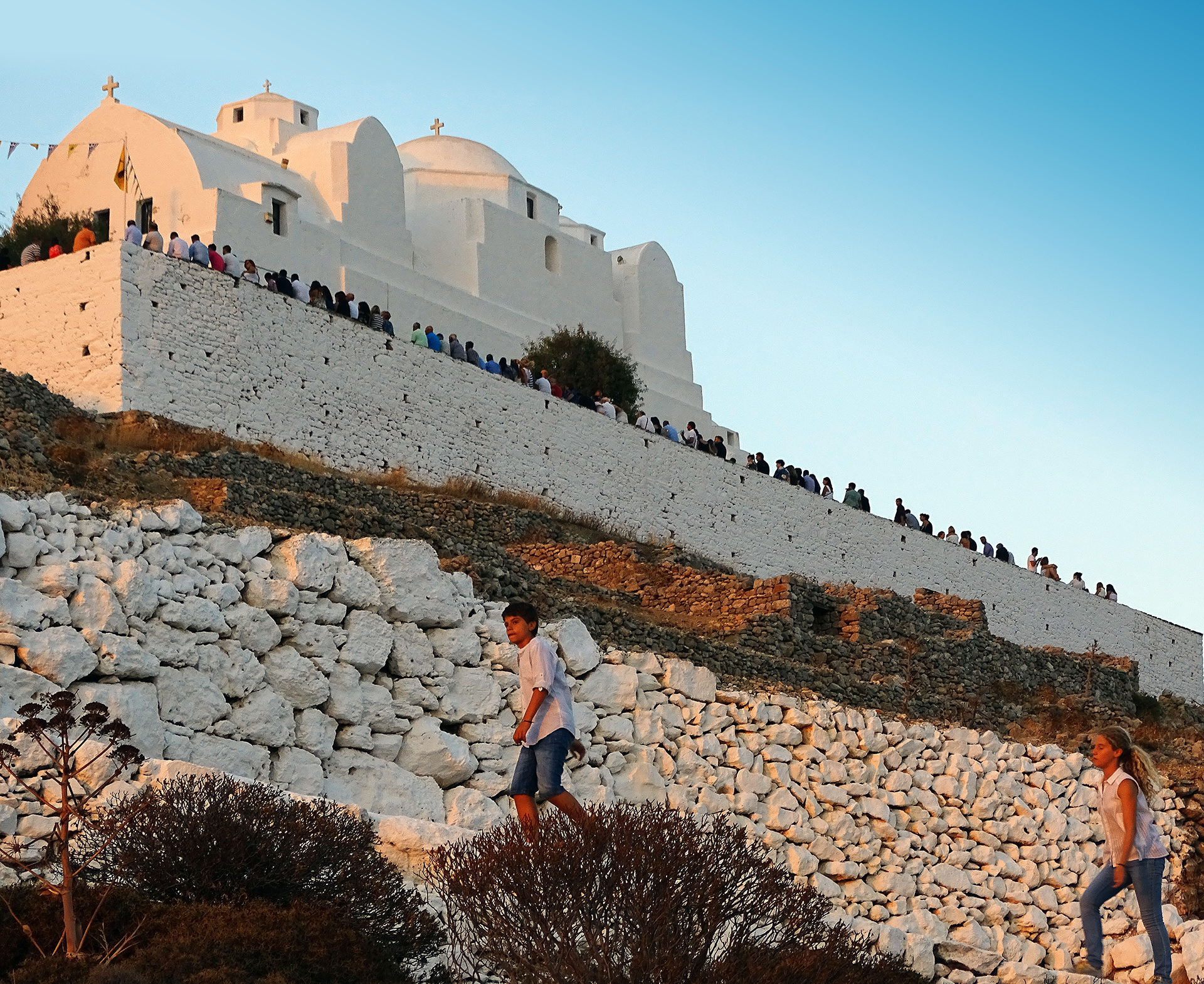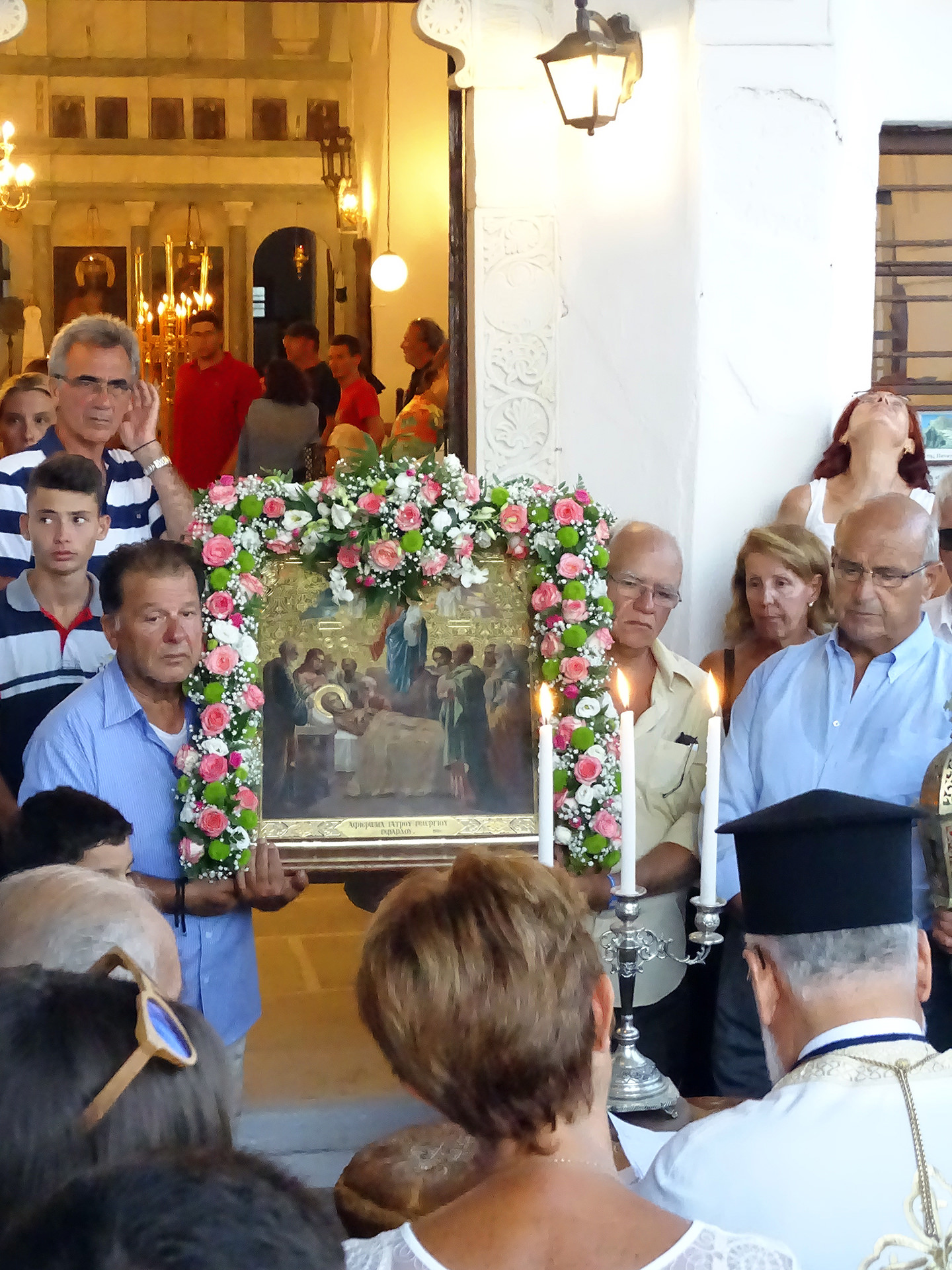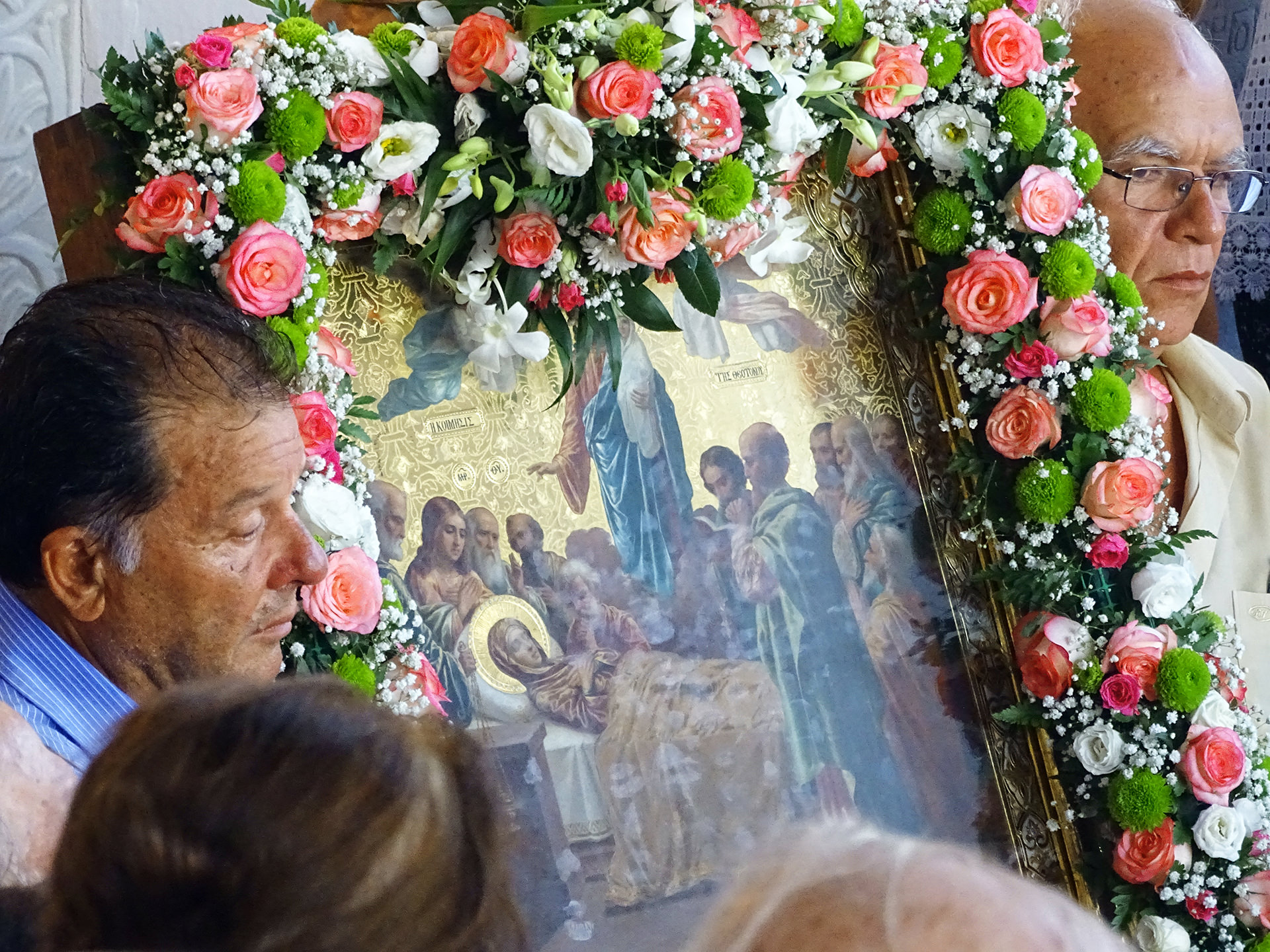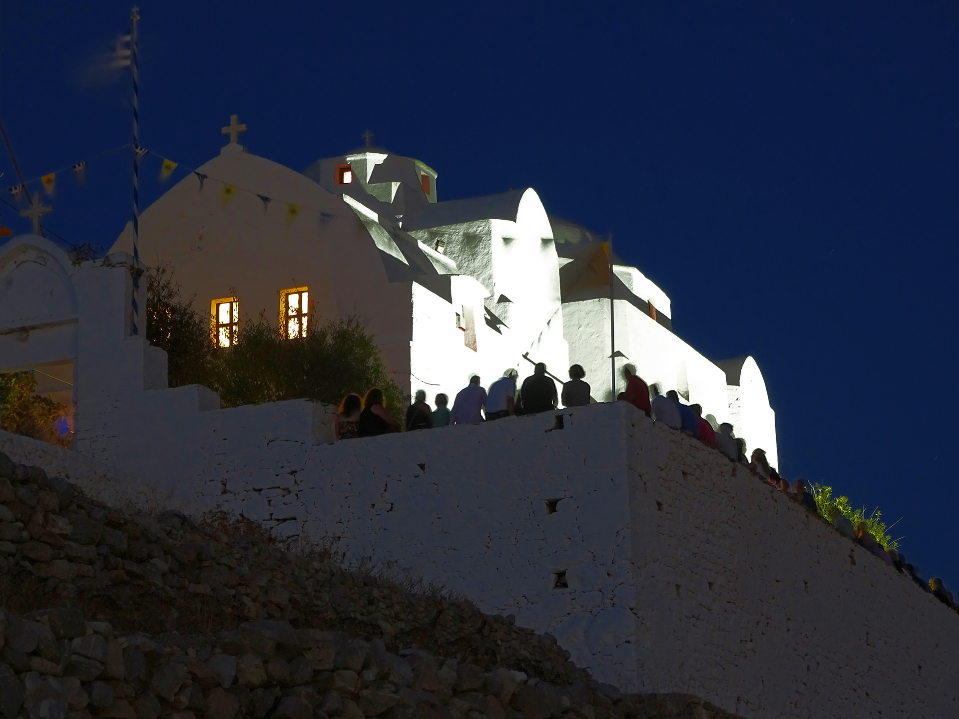 Η Γιορτή της Παναγίας στην πιο φημισμένη εκκλησία της Φολεγάνδρου η οποία είναι αφιερωμένη στην Κοίμηση της Θεοτόκου. Κτισμένη σε ένα βράχο πάνω από την Χώρα, δεσπόζει επιβλητική με το κατάλευκο χρώμα της στη θέση κάποιου αρχαίου ναού, του οποίου έχει χρησιμοποιηθεί οικοδομικό υλικό. Στον αυλόγυρο του ναού, όπως και στο εσωτερικό του ο επισκέπτης διακρίνει εντοιχισμένες αρχαίες επιγραφές και πολλές βάσεις από αγάλματα. Παλαιότερα ήταν καθολικό γυναικείας Μονής.Το σχήμα της είναι ορθογώνιο και ο τύπος της είναι μονόκλιτη βασιλική με πολλούς τρούλους. Διαθέτει επίσης και ψηλό κατάλευκο καμπαναριό.Όπως κάθε χρόνο έτσι και φέτος μετά το πέρας της τελετής στήθηκε μεγάλο γλέντι στην Πούντα με τοπικούς μουσικούς.